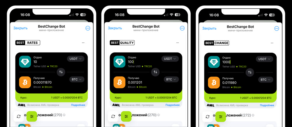 Первым шагом стал выход BestChange mini в Telegram в феврале 2025 года и последующее обновление его визуальной части в октябре 2025 года. Запуск мини-приложения — это демонстрация гибкости и адаптивности крупного игрока, который не боится менять устоявшиеся бизнес-модели, чтобы сделать продукт удобным для всех категорий пользователей. Благодаря интеграции в Telegram-бот, найти лучший курс обмена криптовалют не сложнее, чем отправить сообщение. Этот новый формат, несомненно, укрепит позиции BestChange как надежного лидера отрасли и инноватора.